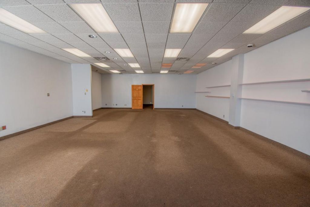Versatile commercial space offering an open-concept layout with excellent flexibility for retail, studio, showroom, or light production use. The property features a spacious main area measuring approximately 37'6 x 26'8, providing ample room for displays, workstations, or customer engagement.Large front windows and a glass entry door allow for natural light and street visibility. The interior includes a secondary room measuring approximately 11'5 x 26'8, along with additional private rooms suitable for office, storage, or specialty use. An ADA-accessible restroom adds convenience and functionality.Additional highlights include overhead lighting throughout, durable flooring, shelving and workspace areas, a utility sink, and dedicated back-of-house workspace. The practical floor plan supports a variety of business operations with clearly defined work and support areas.