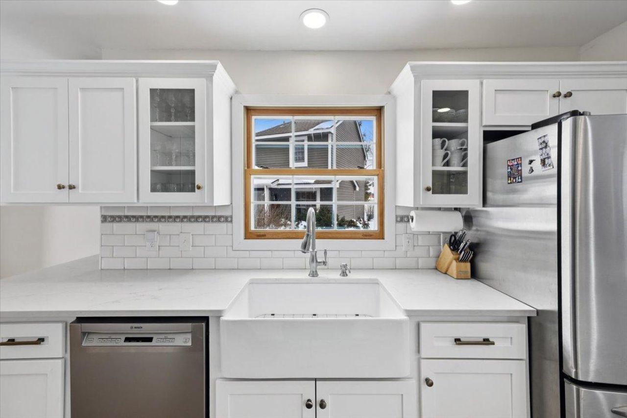 This beautifully updated end-unit townhouse combines modern upgrades with stylish comfort in an inviting, open layout. The remodeled kitchen is a standout feature, offering quartz countertops, quiet-close cabinetry, newer stainless steel appliances, & a gas double oven; perfect for both everyday living & entertaining.Enjoy the seamless flow of the open-concept living & dining area, highlighted by custom floor-to-ceiling draperies & a cozy gas fireplace. Other updates throughout include newer carpet, luxury vinyl tile, 5-panel doors, new lighting, & 6-inch floor molding. The primary suite features a unique cedar closet & a walk-through bath with separate tub & shower.Step outside to the extended patio, ideal for relaxing or hosting. Additional updates include a new water heater in 2020.Say goodbye to lawn care & snow shoveling & hello to free time & low maintenance!